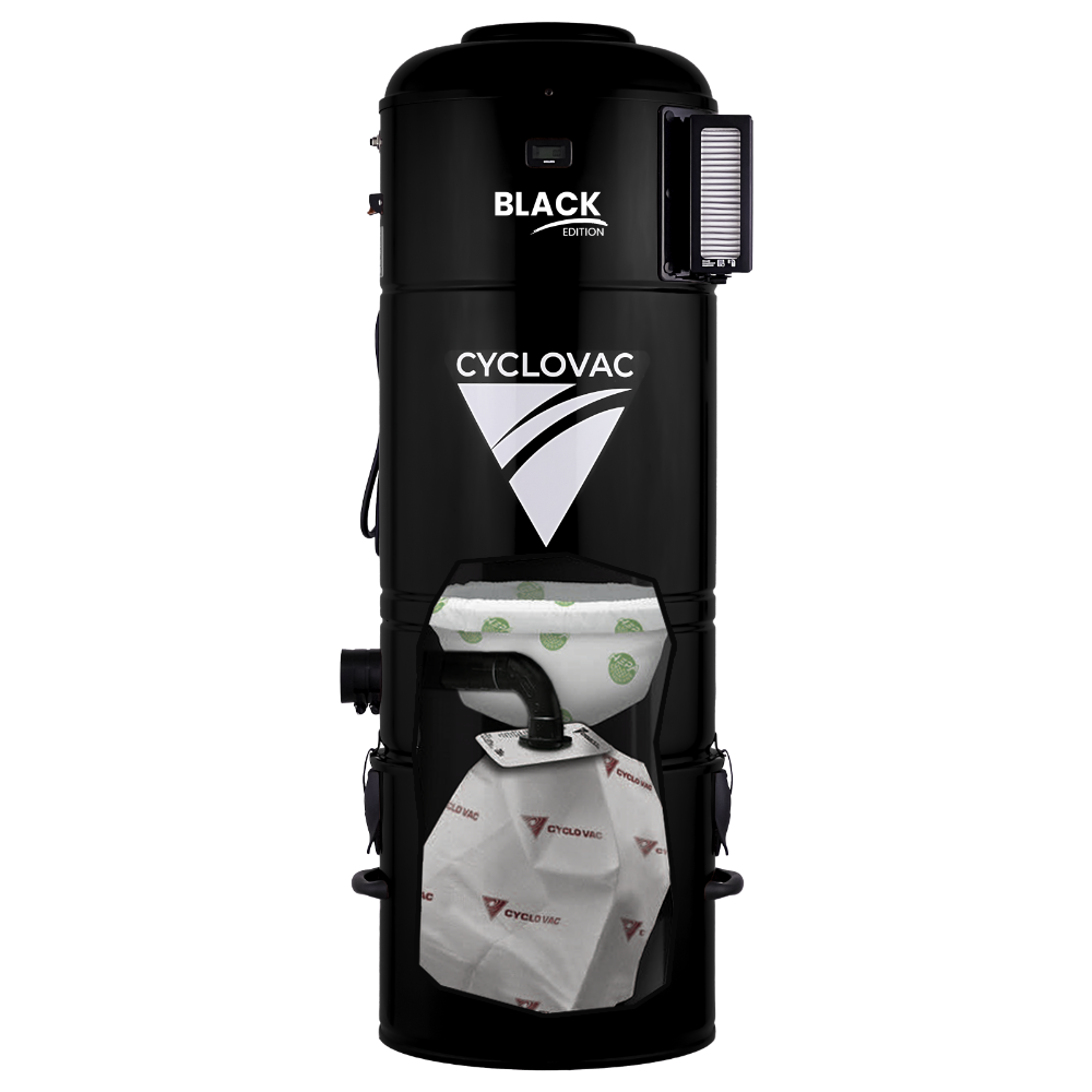 Odkurzacze centralne Cyclovac jako jedyne na świecie wyposażone są w filtr pyłu węglowego ze szczotek silnika. Nasz niepowtarzalny i ekskluzywny system filtracji pyłu węglowego zbiera czarny drobny pył pochodzący z silnika, jaki zazwyczaj zbiera się na powierzchniach wokół odkurzacza. Dzięki temu można mieć pewność, że powietrzem w Twoim domu będzie się łatwiej oddychać, a ściana i przedmioty zlokalizowane wokół odkurzacza będą zawsze czyste.